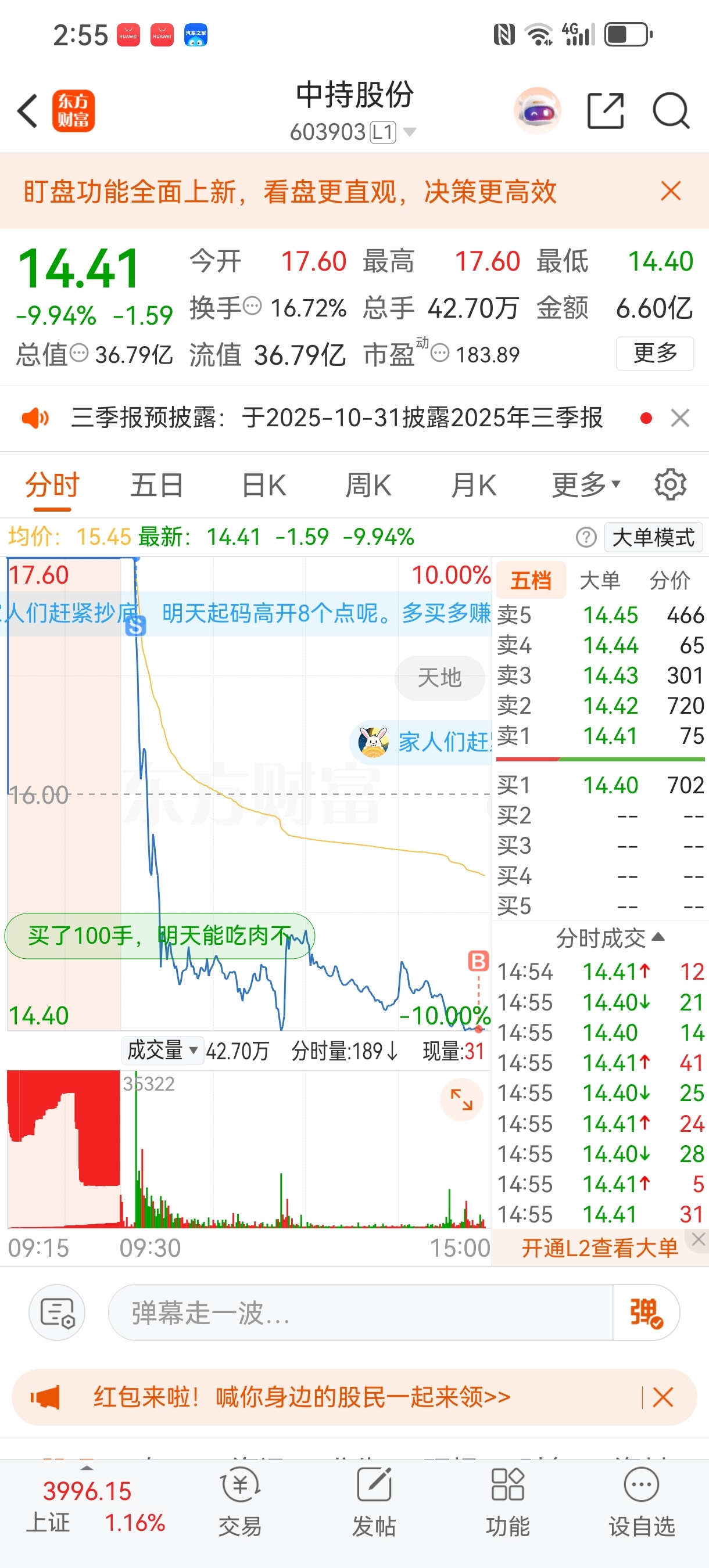 $中持股份(SH603903)$ 开板全仓跑了,尾盘买一手试水