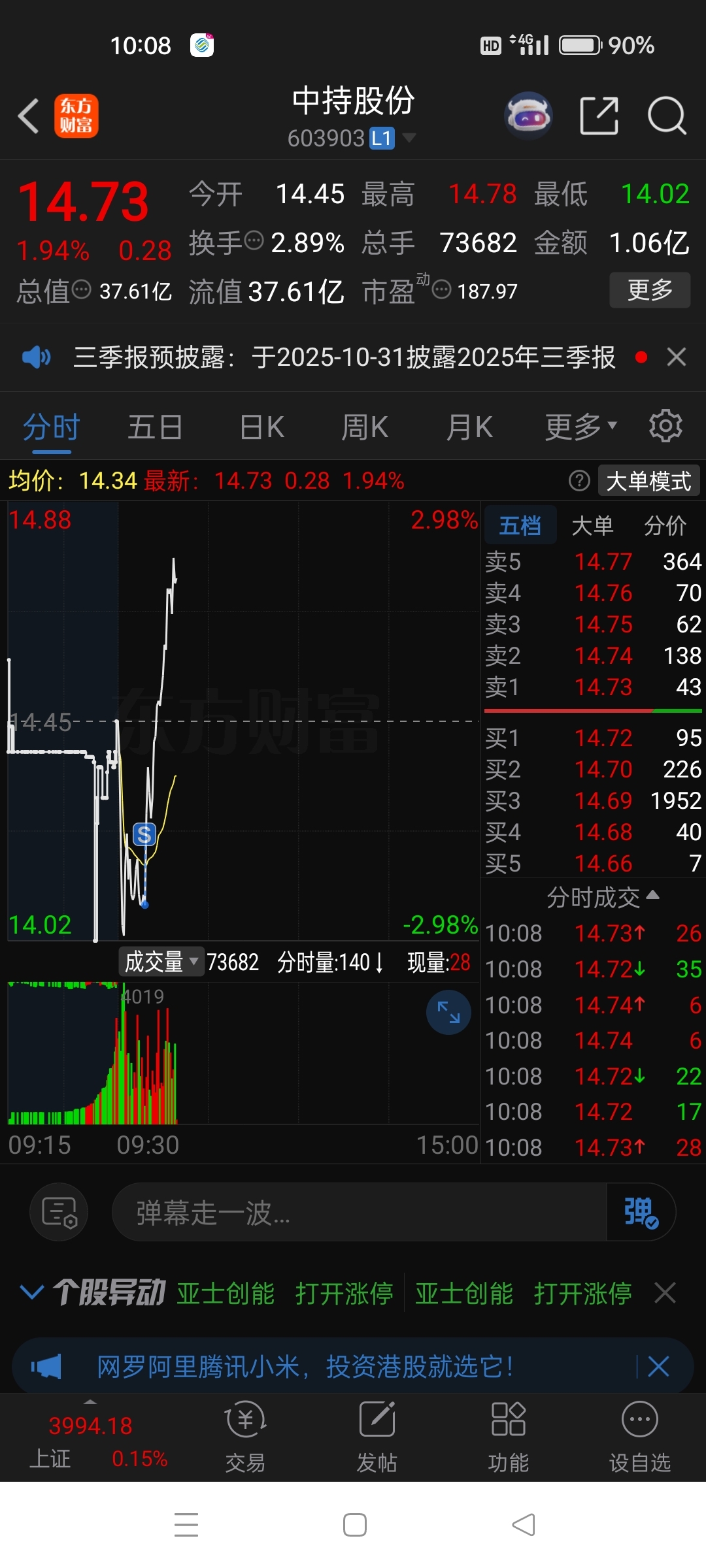 $中持股份(SH603903)$ 我怀疑我账户被监控了,还怎么玩