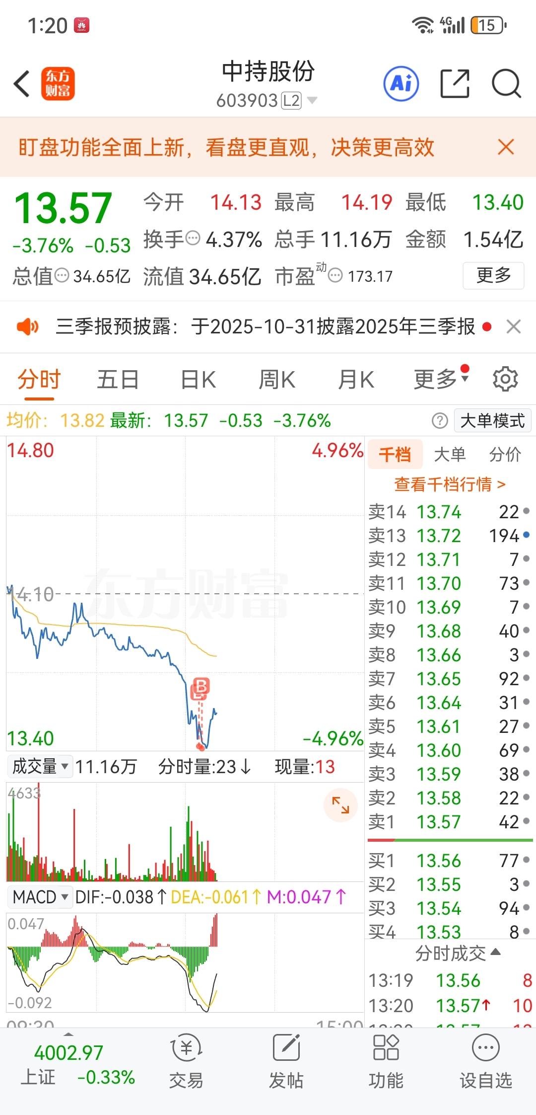 $中持股份(SH603903)$ 抄底成功,明天吃肉肉