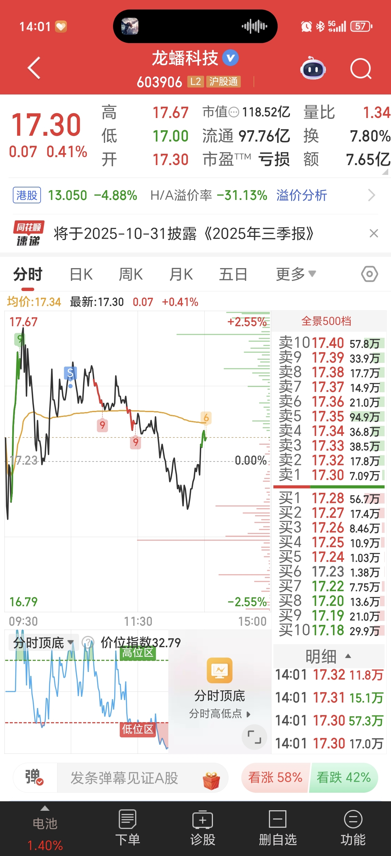 $龙蟠科技(SH603906)$ 明天跌吧,好吗?