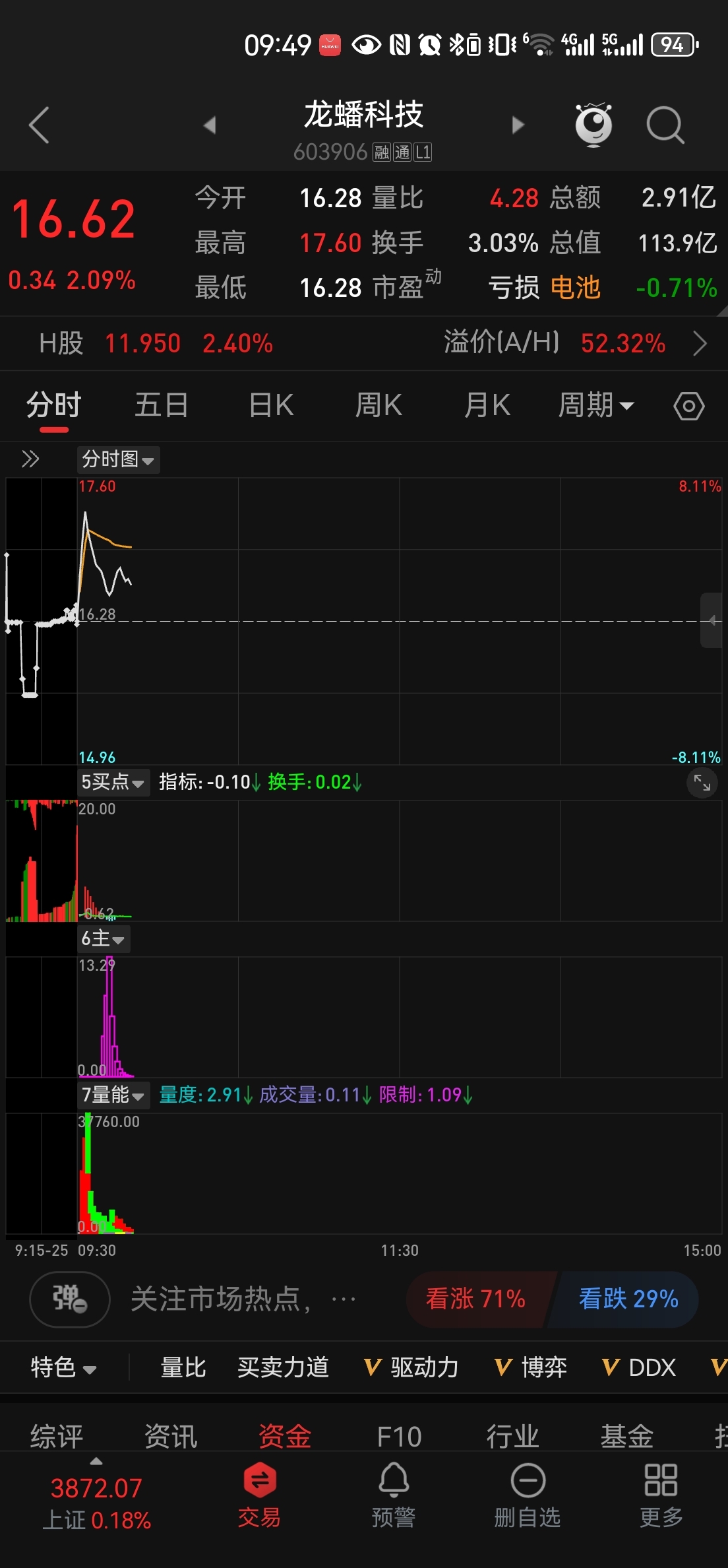 $龙蟠科技(SH603906)$ 今天不会有人追进去了吧?