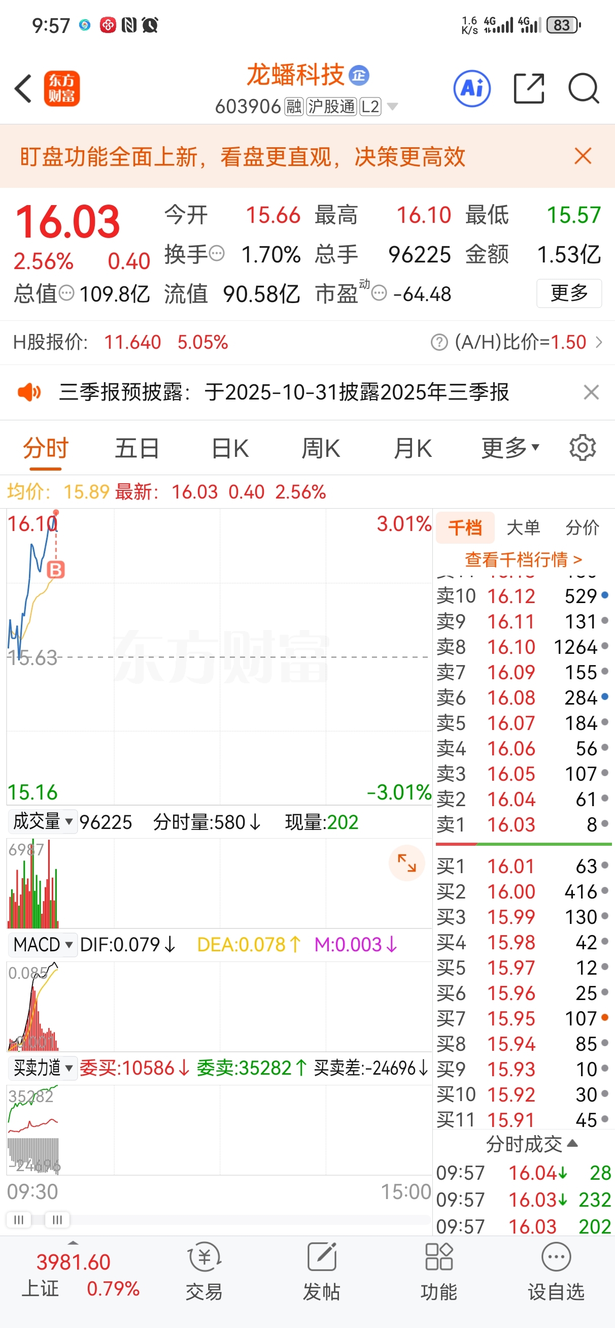 $龙蟠科技(SH603906)$ 挂山顶了?