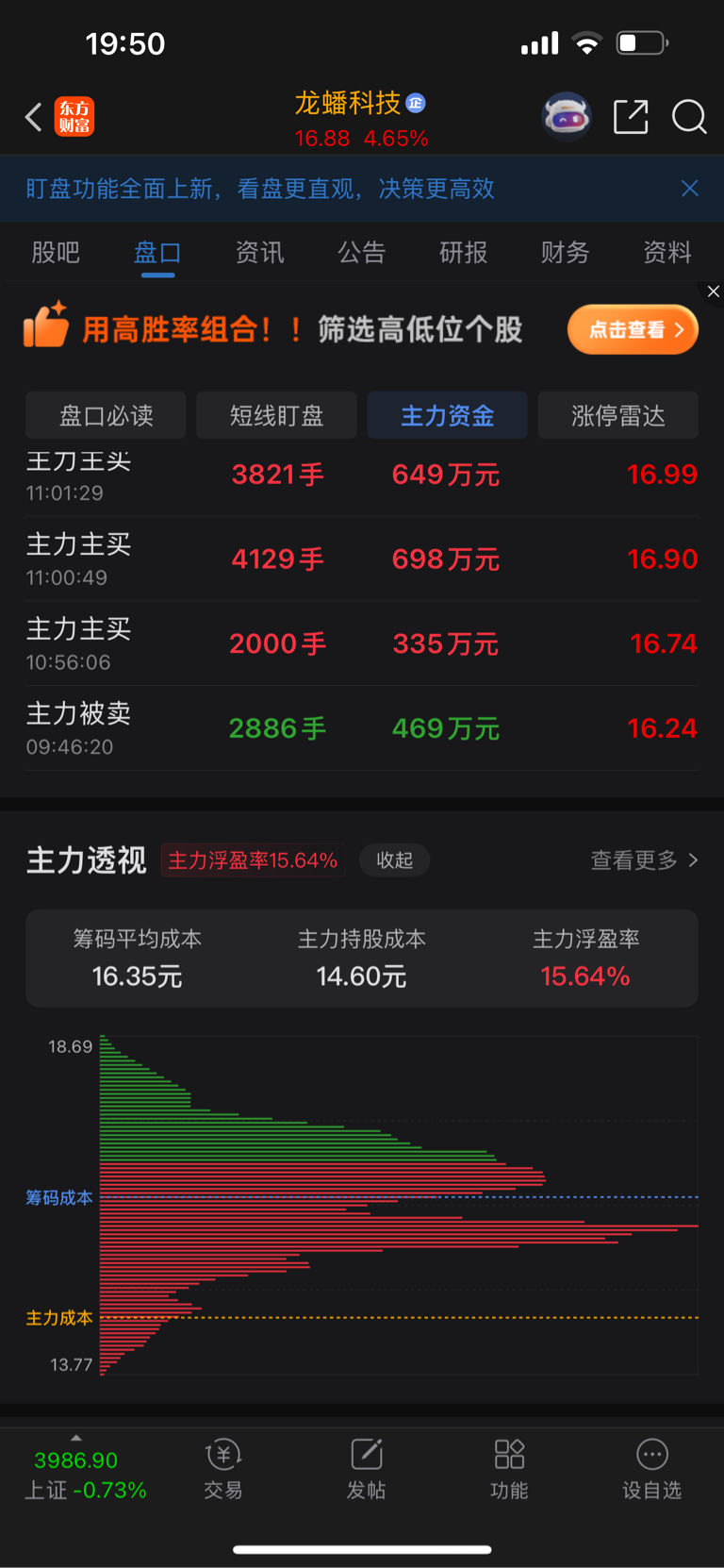 $龙蟠科技(SH603906)$ 明天主力会不会跑路?