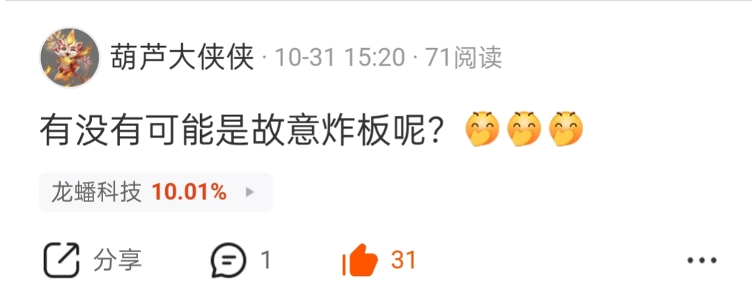 温馨提示: 1.根据《证券法》规定,禁止编造、传播虚假信息或者误导性信息,扰乱证券市场;2.用户在本社区发表的所有资料、言论等仅代表个人观点,与本网站立场无关,不对您构成任何投资建议。用户应基于自己的独立判断,自行决定证券投资并承担相应风险。《东方财富社区管理规定》