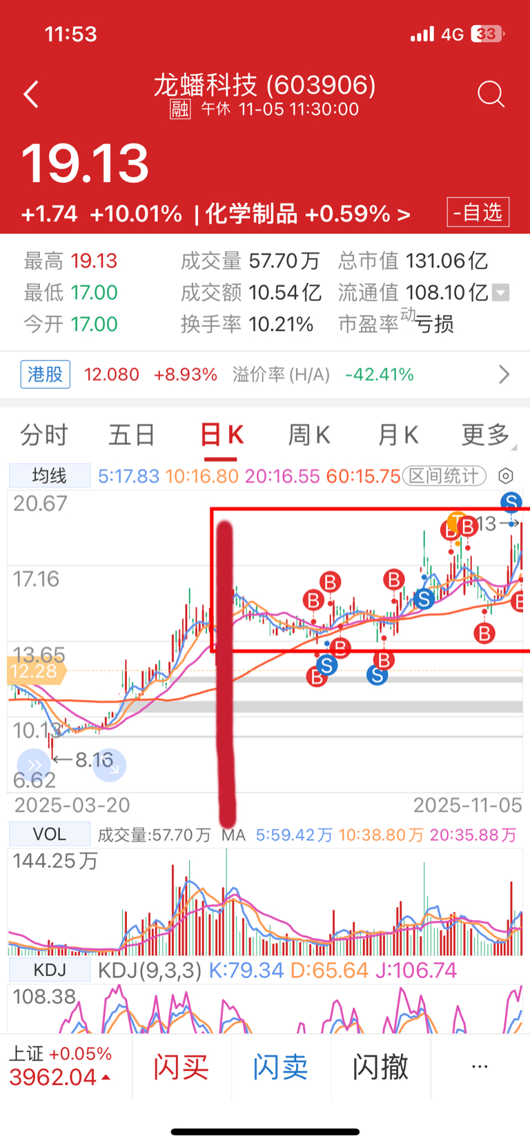 9月17号炸板后,一直洗盘到今天,终于突破箱体了。感谢自己一直做波段