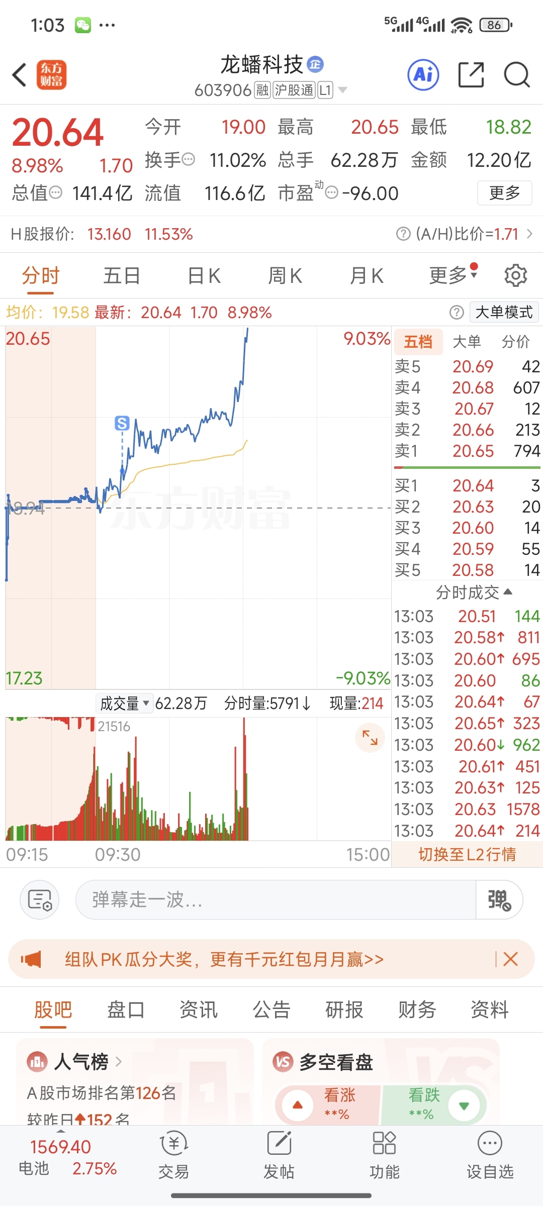 $龙蟠科技(SH603906)$ 主力非得盯着我?