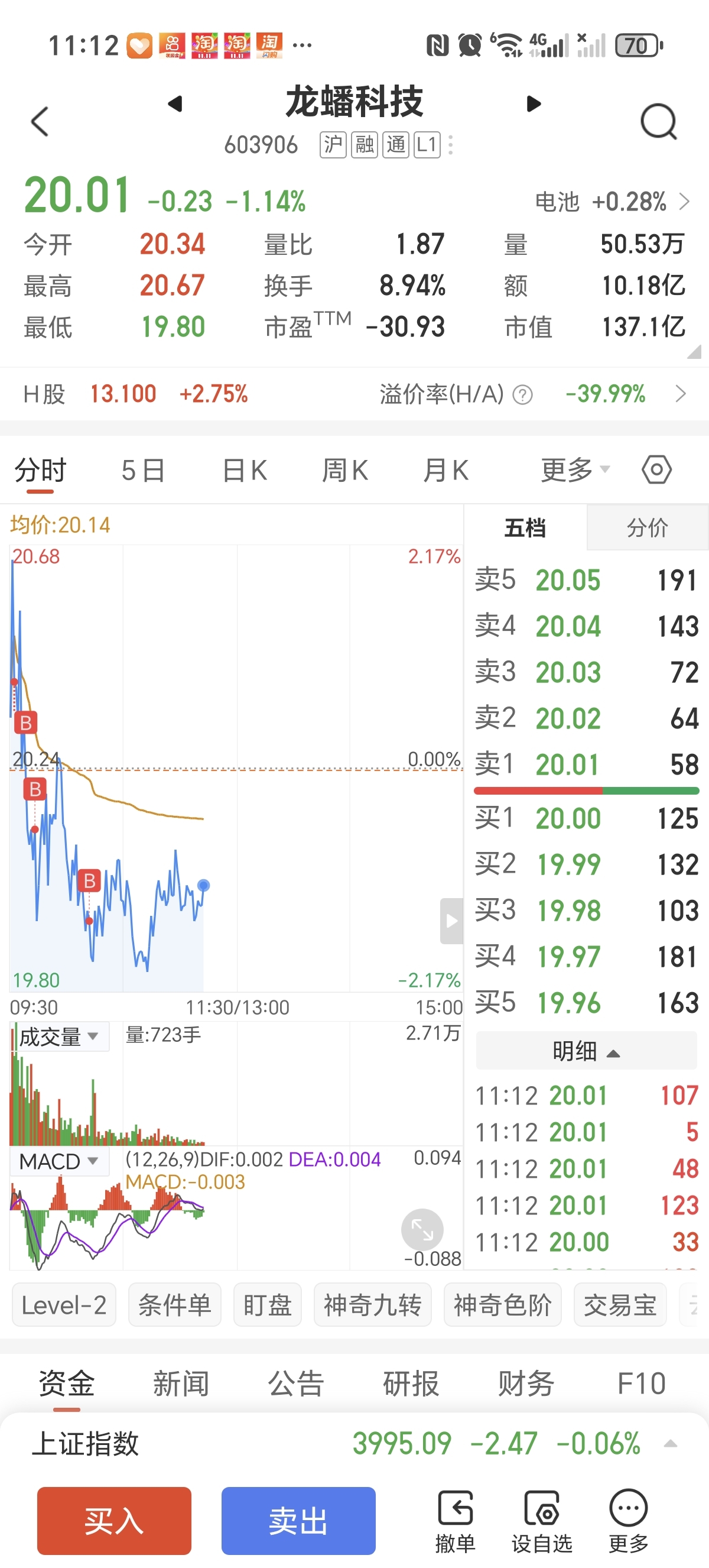 $龙蟠科技(SH603906)$ 进来就被套,不敢买了