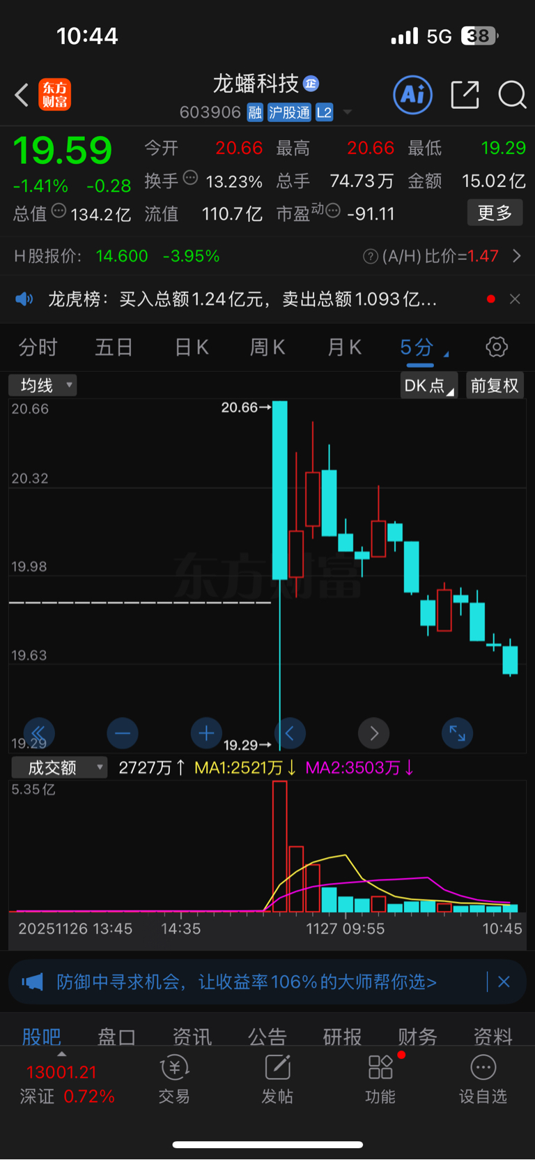 $龙蟠科技(SH603906)$ 5分钟全身卖单,出货让你们接盘