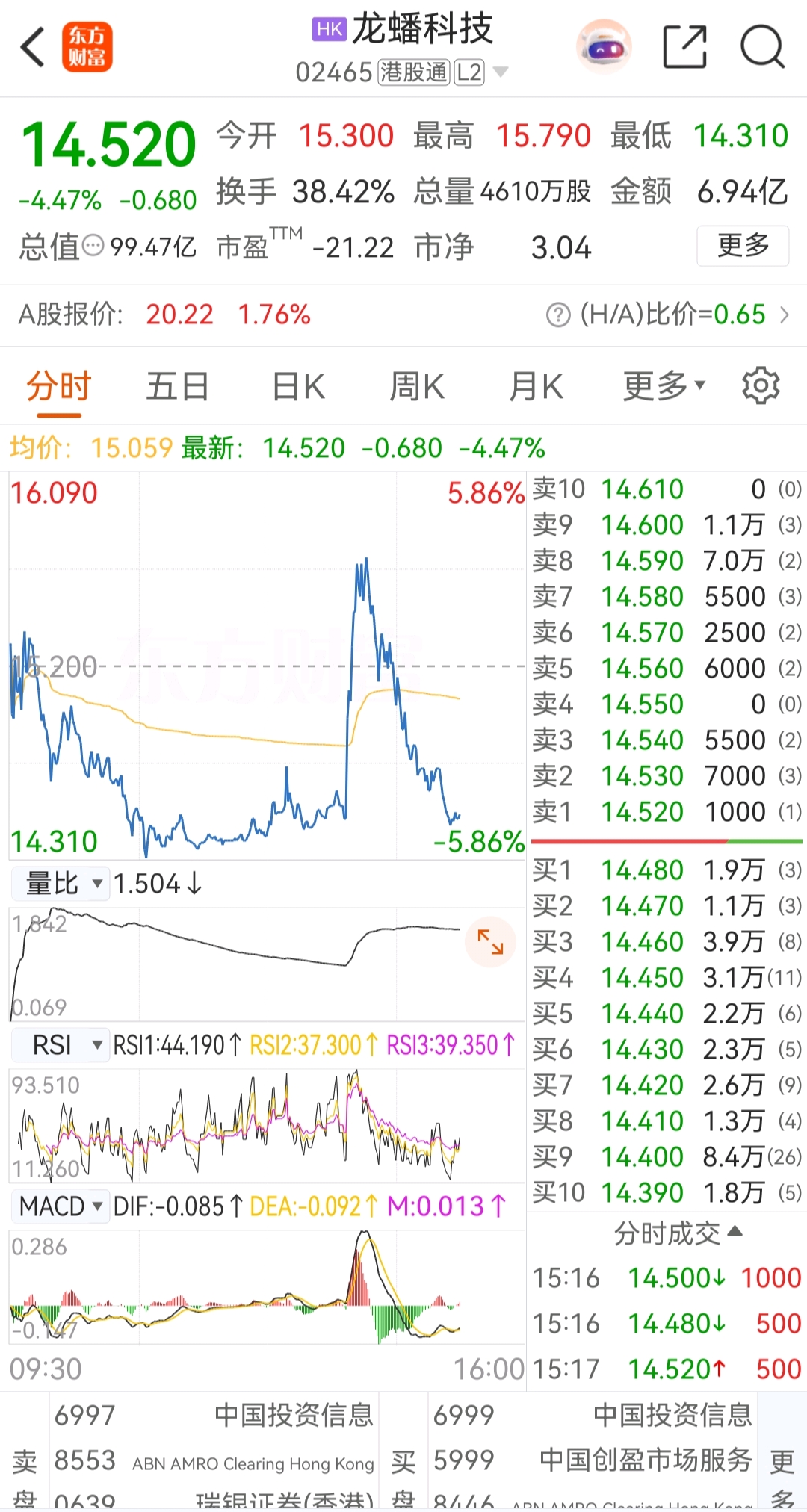 $龙蟠科技(SH603906)$ 被港股带下来的 港股太恶心了