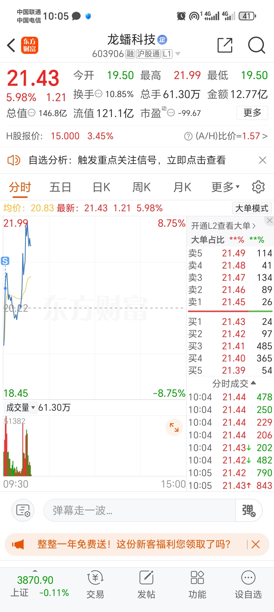 $龙蟠科技(SH603906)$ 第2社保养老金账户第(1)战。
