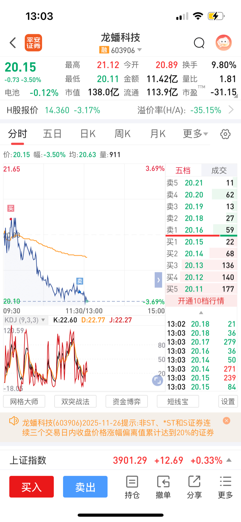 $龙蟠科技(SH603906)$ 造虐 这个操作 亏几k了 太恶心了