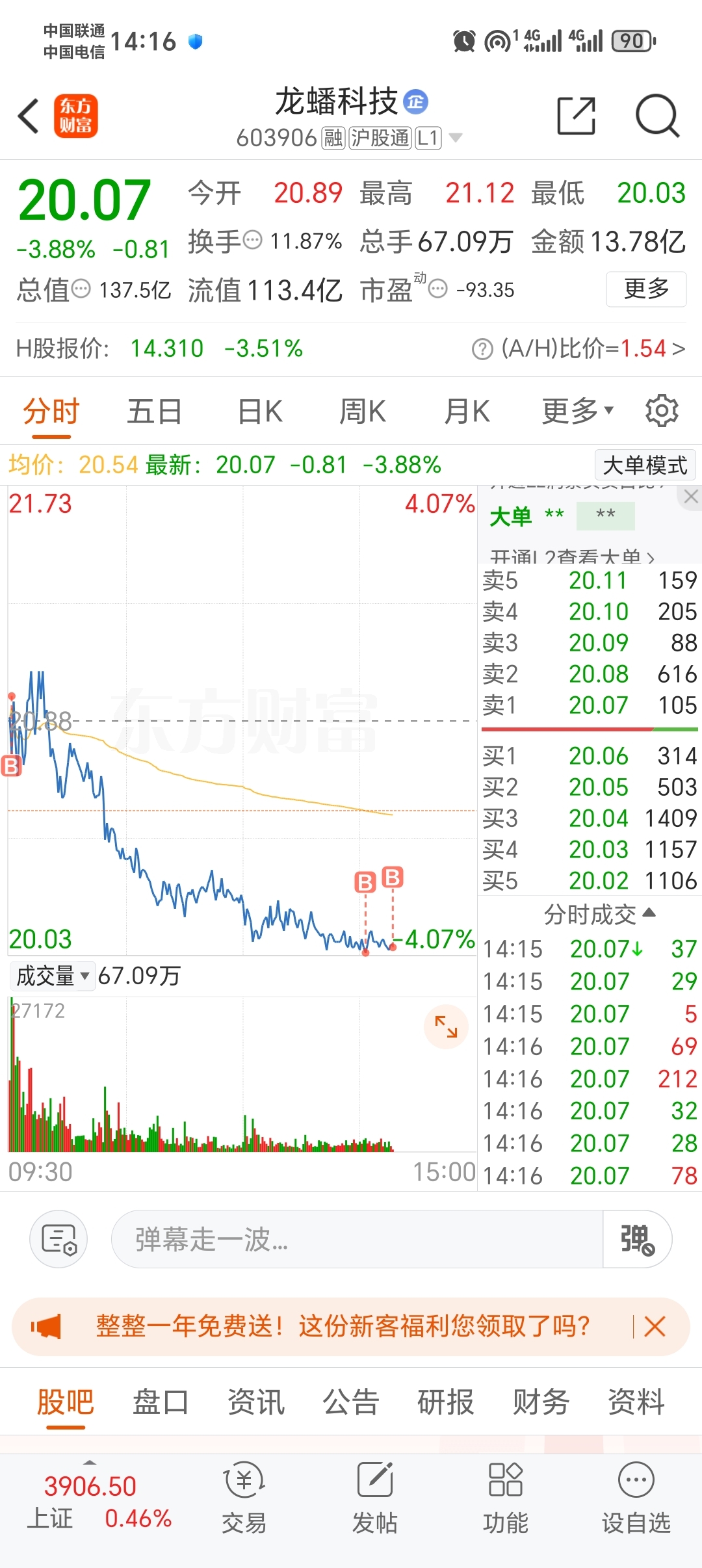 $龙蟠科技(SH603906)$ 再补一手,没钱了,装死吧。