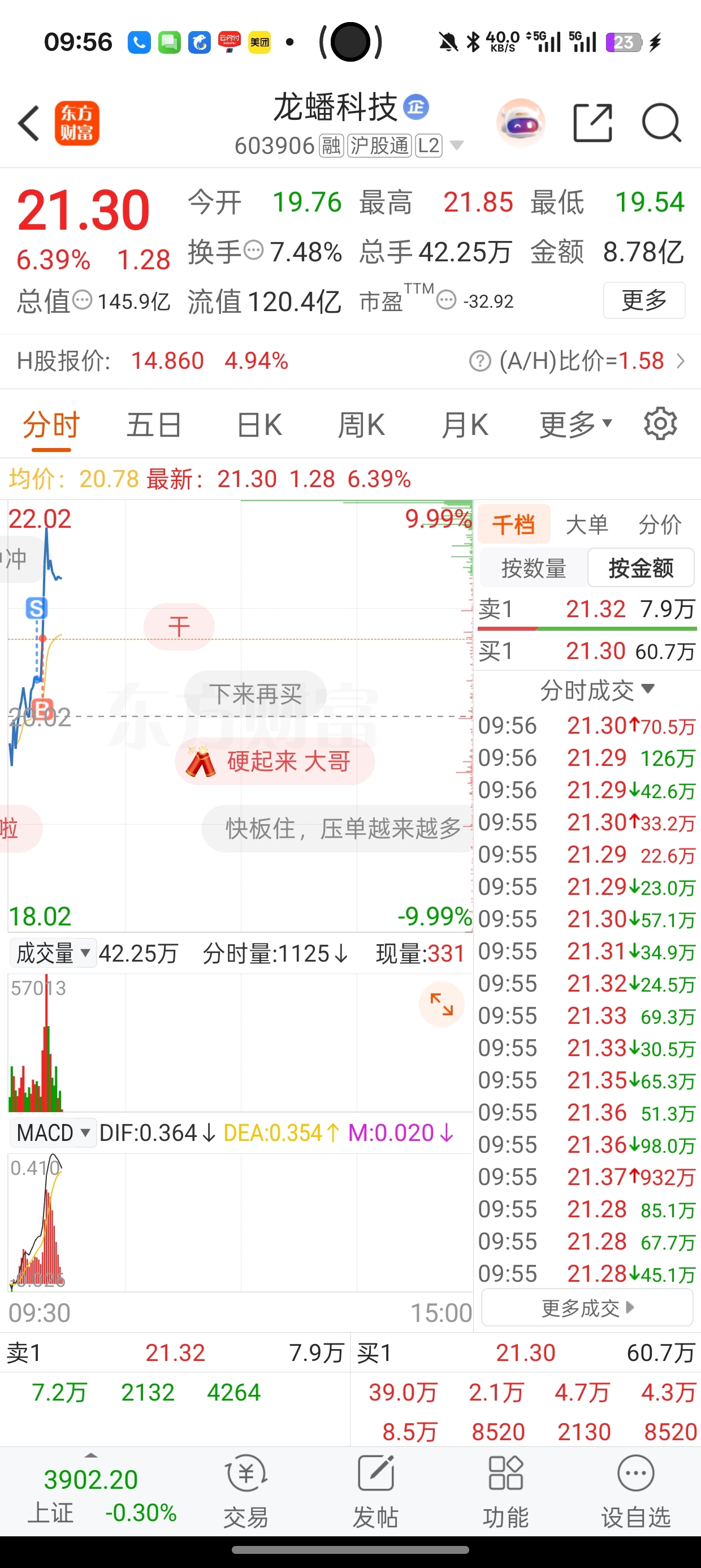 $龙蟠科技(SH603906)$ 坚定看到30的,今天打算做个T,结果刚卖就拉,做了2个点反T,吐血