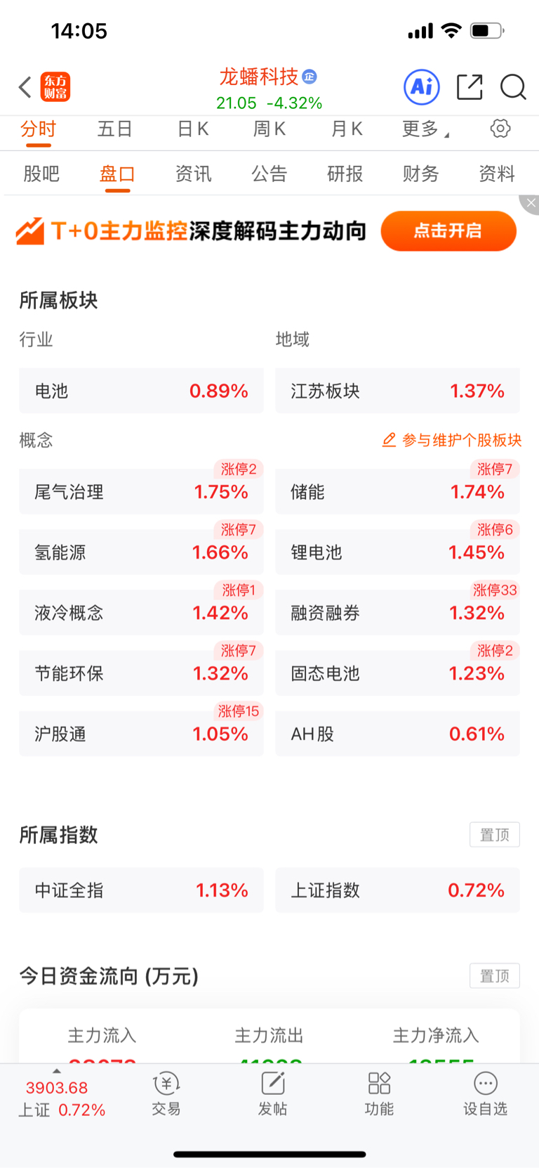 $龙蟠科技(SH603906)$ 今天板块都红的,就他一个跌呀