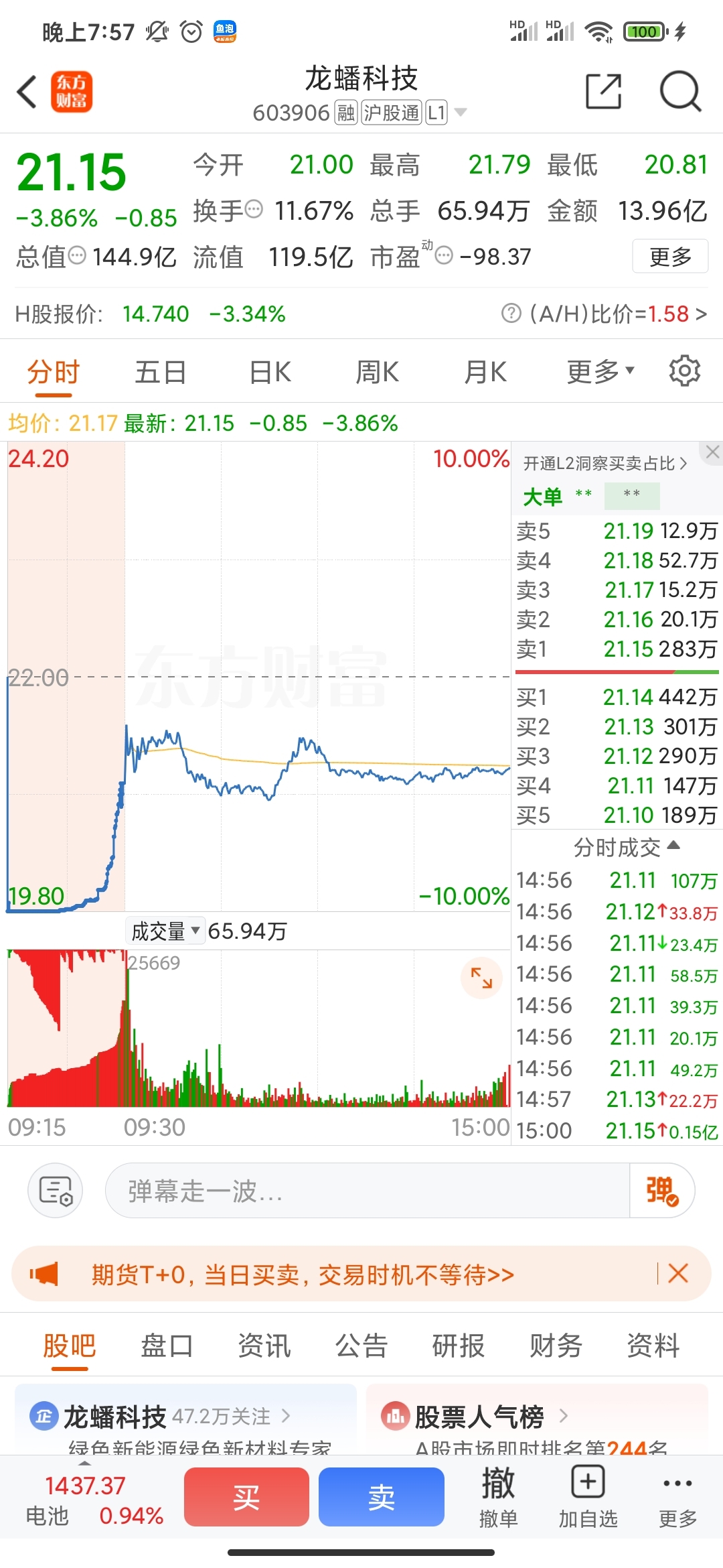 $龙蟠科技(SH603906)$