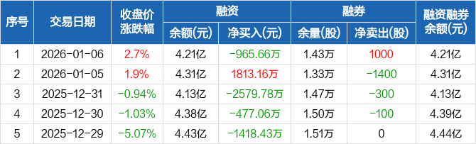 龙蟠科技:融资净偿还965.66万元,融资余额4.21亿元(01-06)