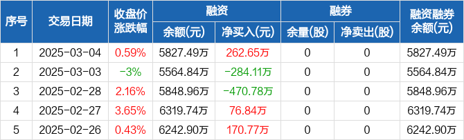 牧高笛:融资净买入262.65万元,融资余额5827.49万元(03-04)