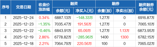牧高笛:融资净偿还148.33万元,融资余额6887.13万元(12-24)