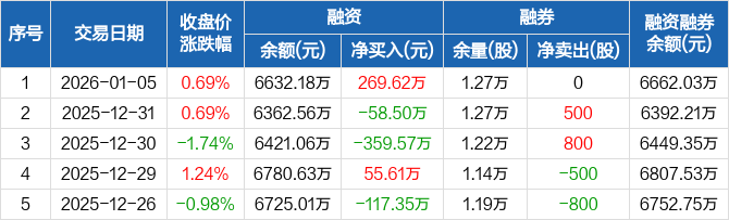 牧高笛:融资净买入269.62万元,融资余额6632.18万元(01-05)