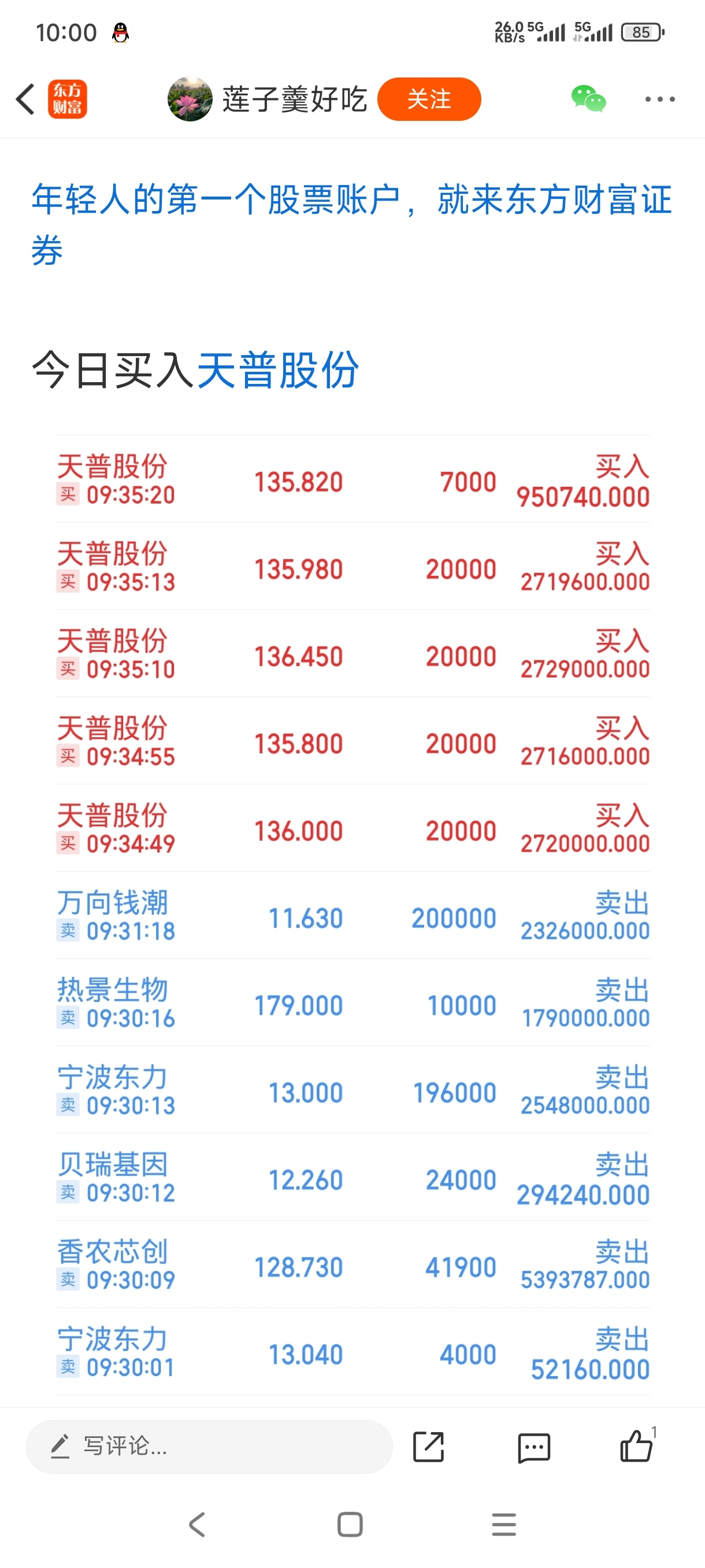 这个托真奇怪,晒单装大量买入其他股,但是实际成交并没有他的买入信息,买了其他股不去那个股那里唱多,反而天天在国茂股份这里唱空,不知道他亏了多少在这里。