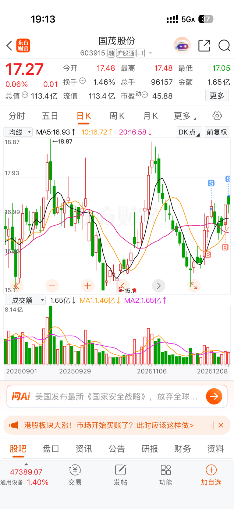 $国茂股份(SH603915)$ 谢谢操盘手