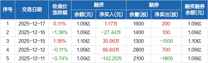 苏博特:融资净买入1.17万元,融资余额1.09亿元(12-17)