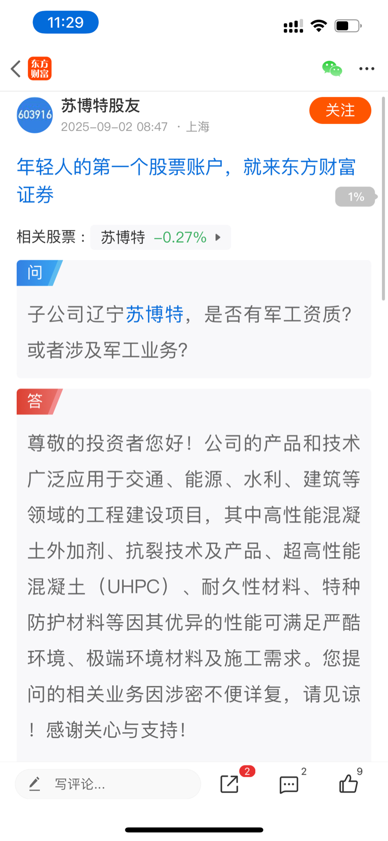 $苏博特(SH603916)$ 呼吁广大投资人不要再问苏博特有关军工业务了,苏博特从普通核电站做到可控核聚变项目,军工业务会是啥闭着眼都知道,请不要再追问涉密问题