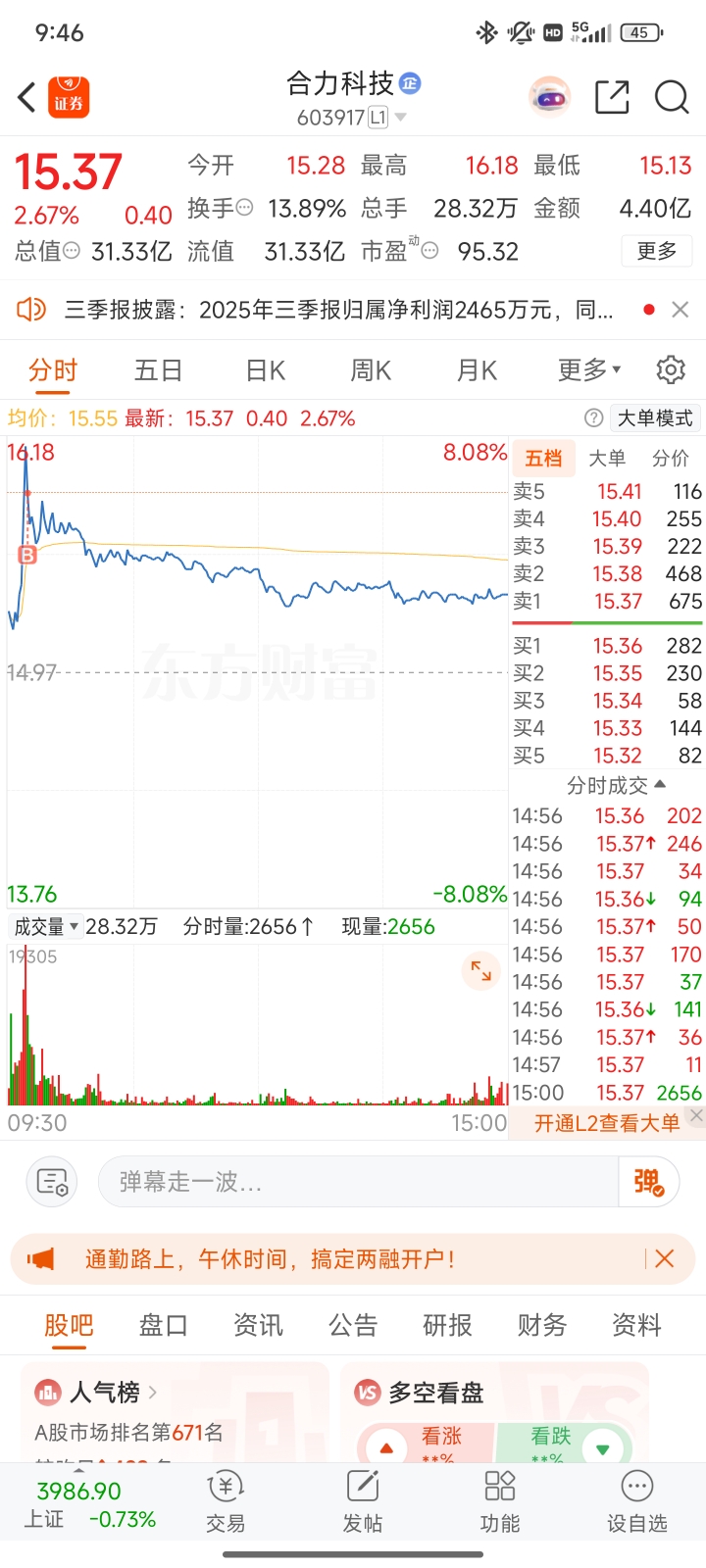 $合力科技(SH603917)$ 明天坐等主力帮我解套,哈哈哈