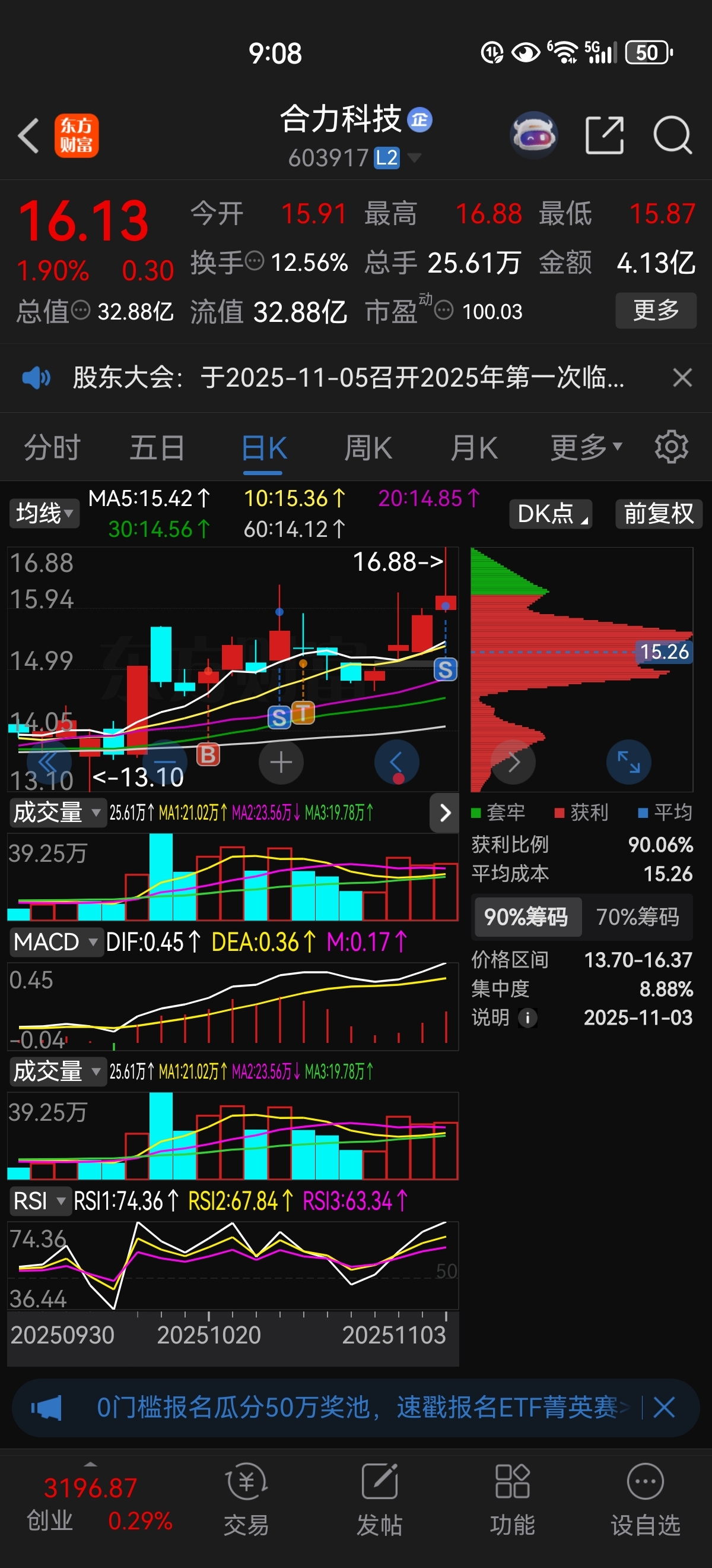 $合力科技(SH603917)$ 老子恨不过卖了。天天冲高回落。