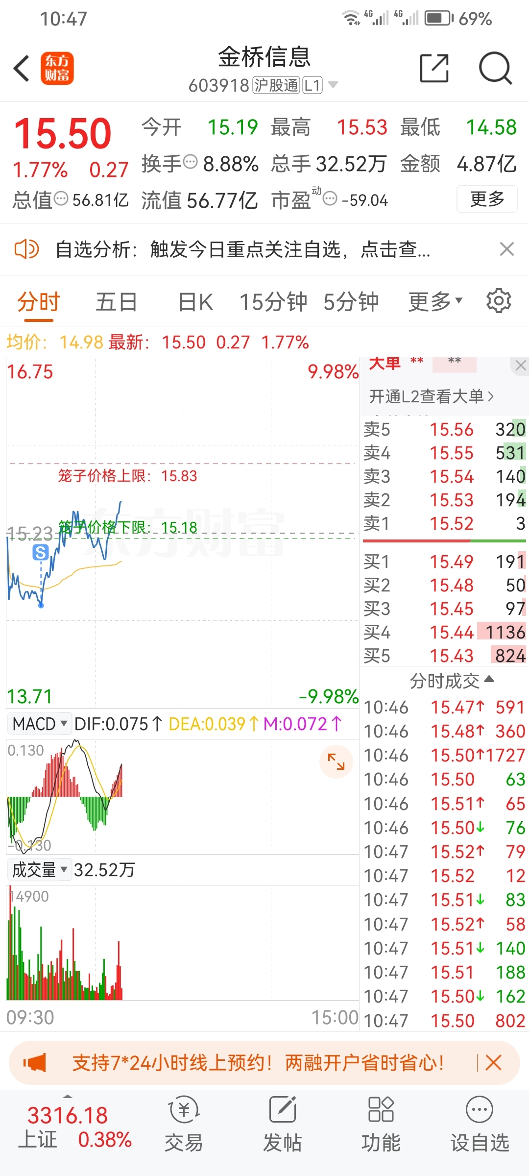 $金桥信息(SH603918)$ 上周五最高进去的,买完一路跌,今早一把清仓,一路涨,这家伙我就没赚到过,有监控系统吗