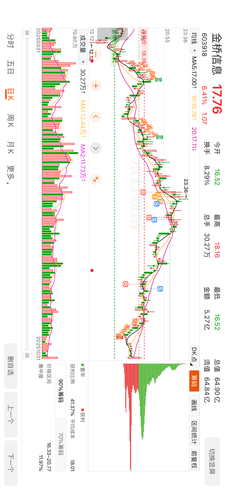 $金桥信息(SH603918)$  不是我不想买你,而是我今天买了掌阅科技,只好看你们吃肉了
