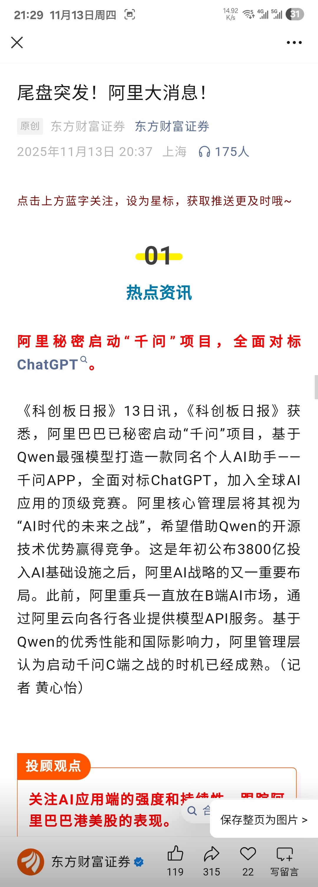 郑重声明:用户在财富号/股吧/博客等社区发表的所有信息(包括但不限于文字、视频、音频、数据及图表)仅代表个人观点,与本网站立场无关,不对您构成任何投资建议,据此操作风险自担。请勿相信代客理财、免费荐股和炒股培训等宣传内容,远离非法证券活动。请勿添加发言用户的手机号码、公众号、微博、微信及QQ等信息,谨防上当受骗!