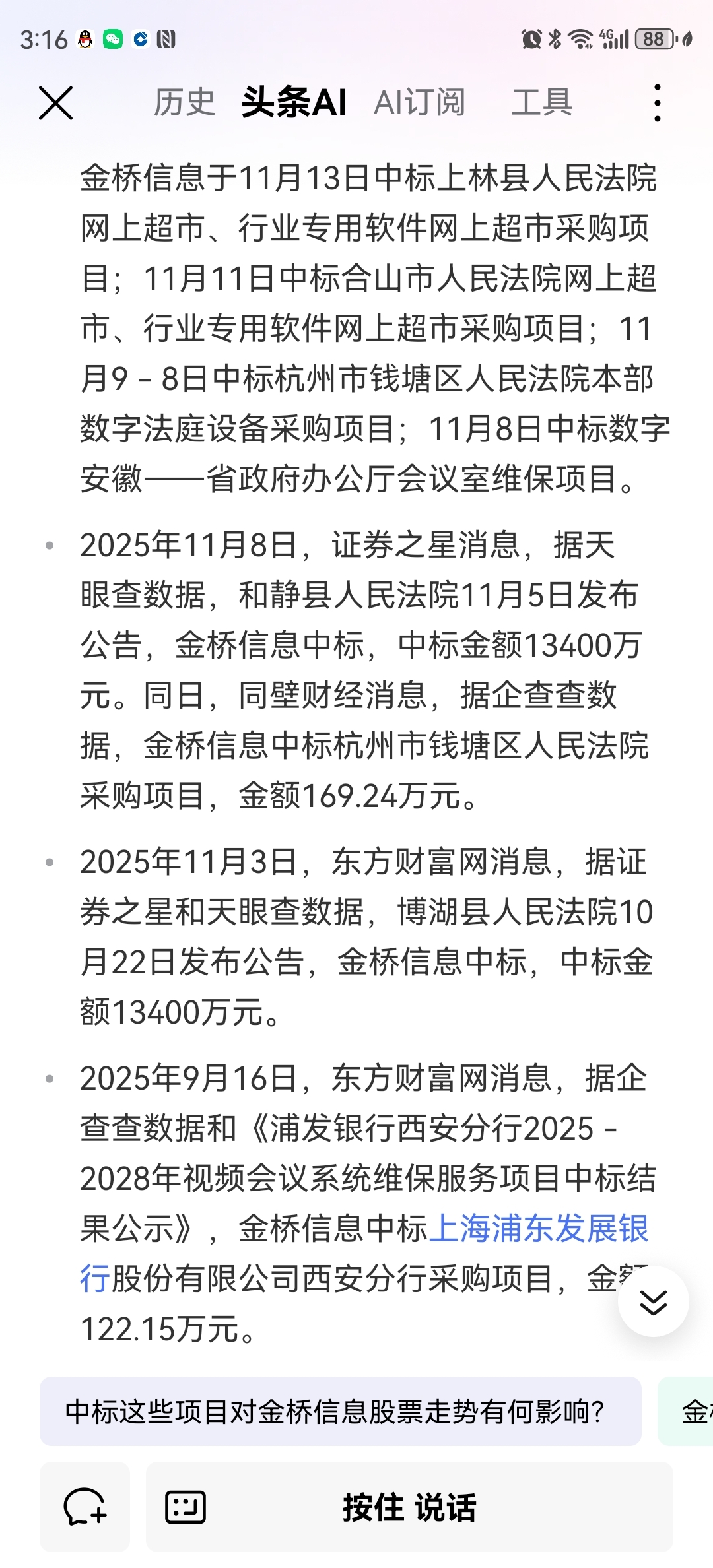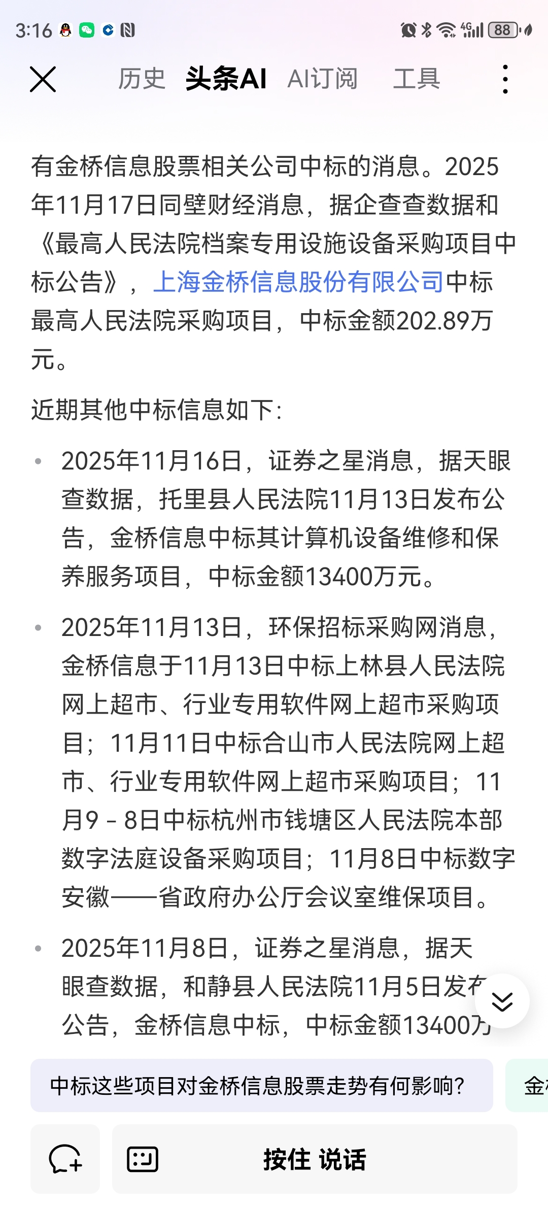 $金桥信息(SH603918)$ 买了此股,买很长时间了,套牢了,亏很多呢!我从ai问的,还有中标呢!也不知道是真是假呢,难道,有好几个呢,都是假的吗?