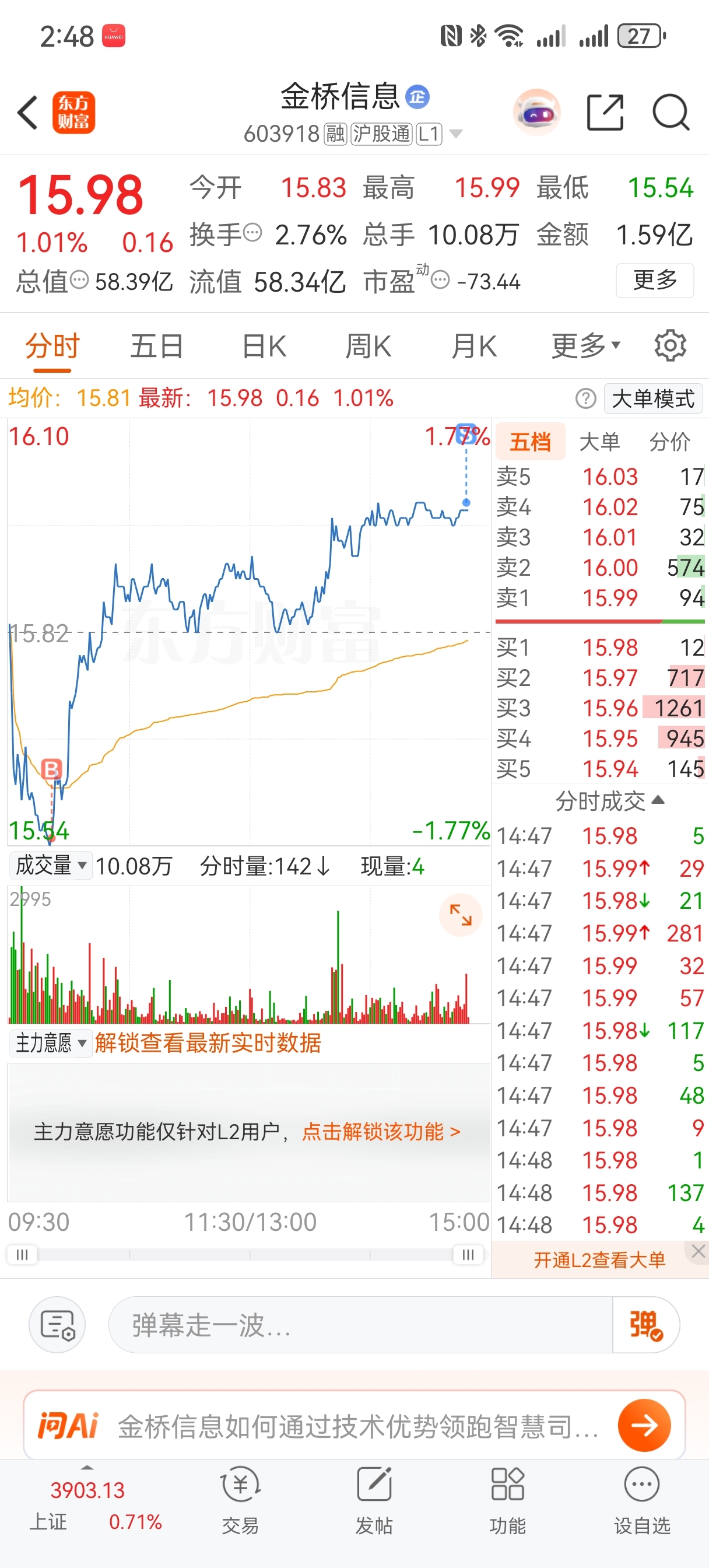 $金桥信息(SH603918)$ 这货格局不了3天,就动不动7⃣连阴。今天做了个 T,回本遥遥无期