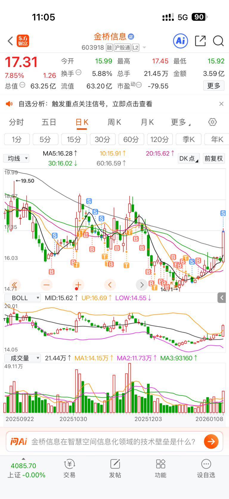 $金桥信息(SH603918)$ 为了让主力有实力拉我奉献我得筹码给主力帮兄弟们一把