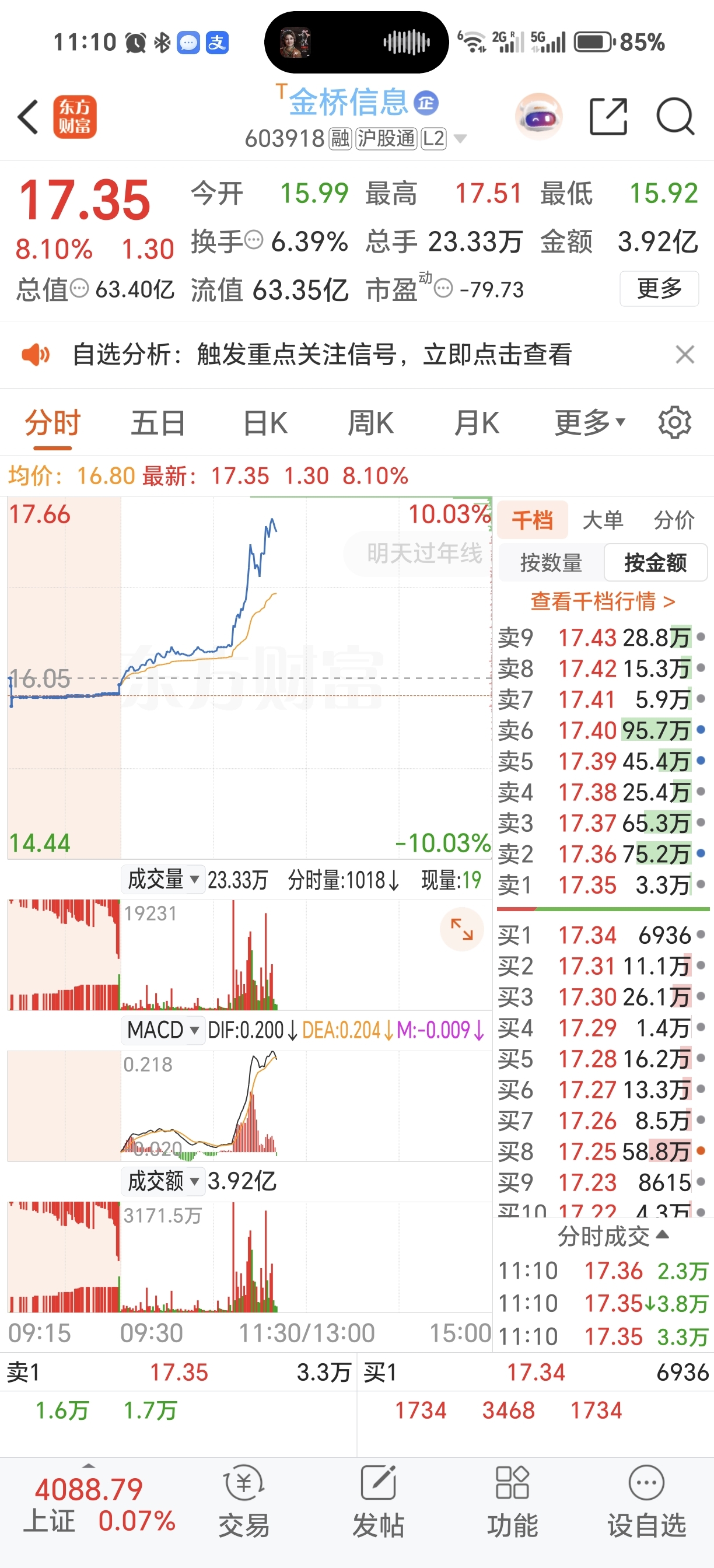$金桥信息(SH603918)$ 随便涨跌,我拿到宇树科技上市那一波