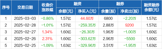 金徽酒:融资净买入44.6万元,融资余额1.57亿元(03-03)