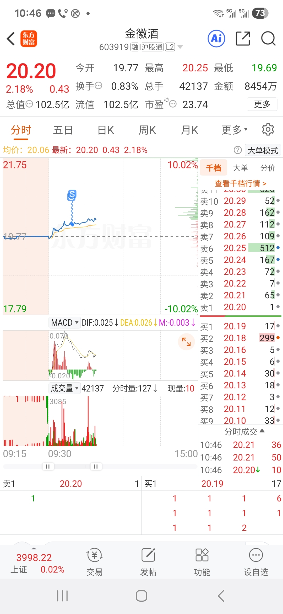 $金徽酒(SH603919)$ 卖飞了,撤了撤了拜拜各位