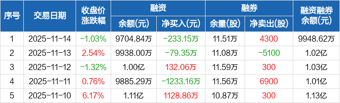 金徽酒:融资余额9704.84万元,创近一年新低(11-14)