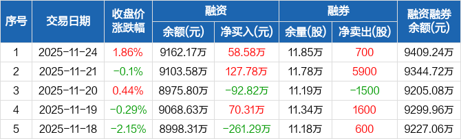 金徽酒:融资净买入58.58万元,融资余额9162.17万元(11-24)