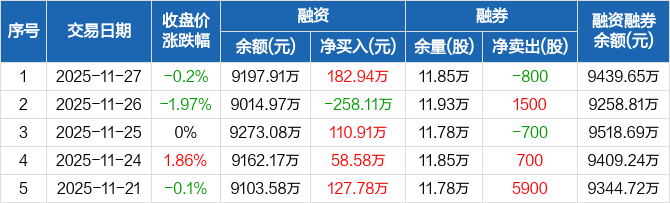 金徽酒:融资净买入182.94万元,融资余额9197.91万元(11-27)