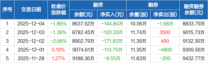金徽酒:融资余额8637.62万元,创近一年新低(12-04)