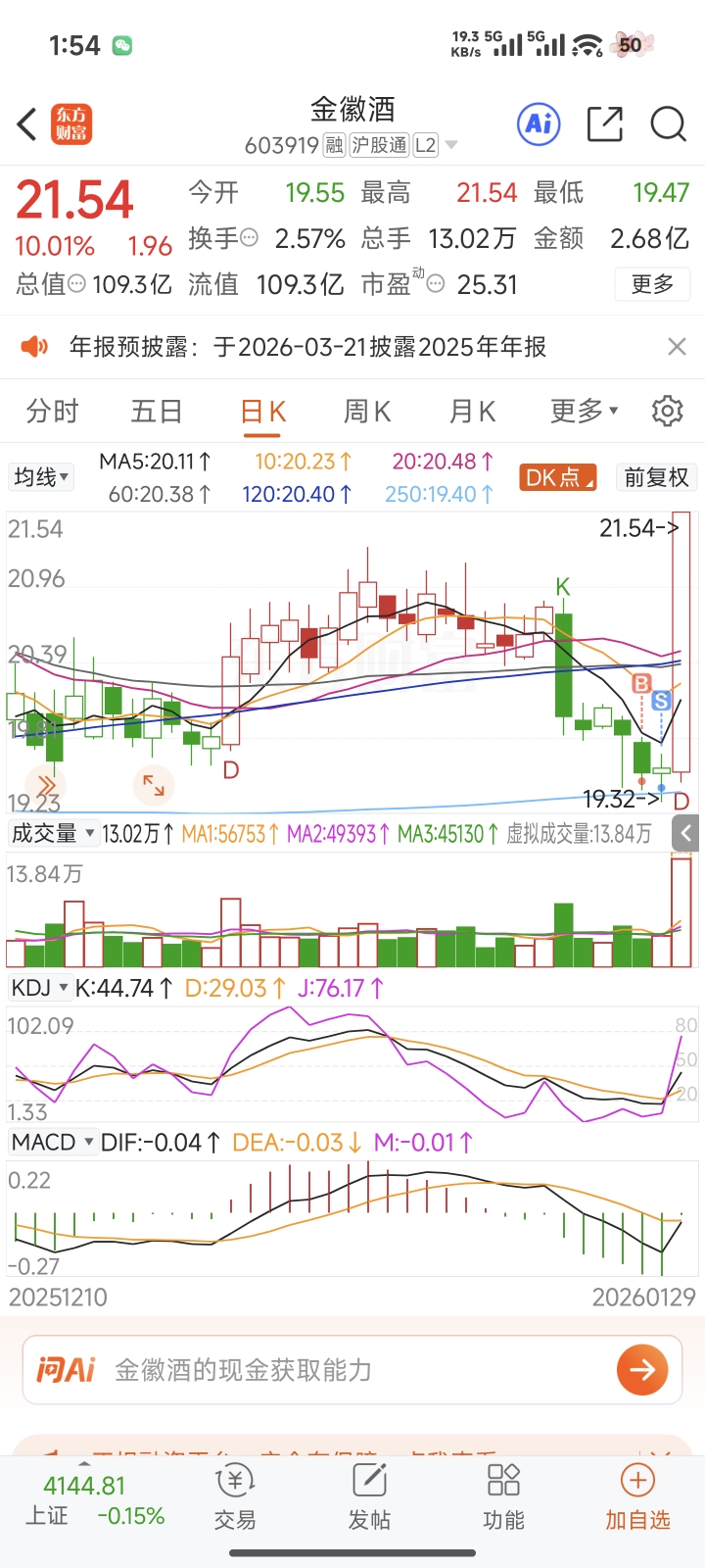 $金徽酒(SH603919)$ 就等我这点呢