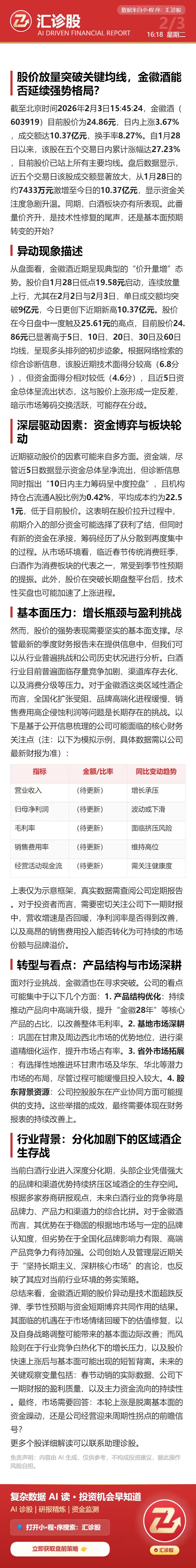 股价放量突破关键均线,金徽酒能否延续强势格局?