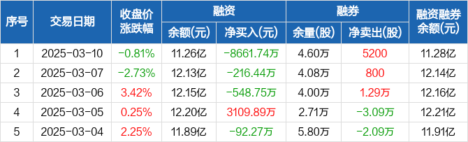 世运电路:融资净偿还8661.74万元,两市排名第11(03-10)