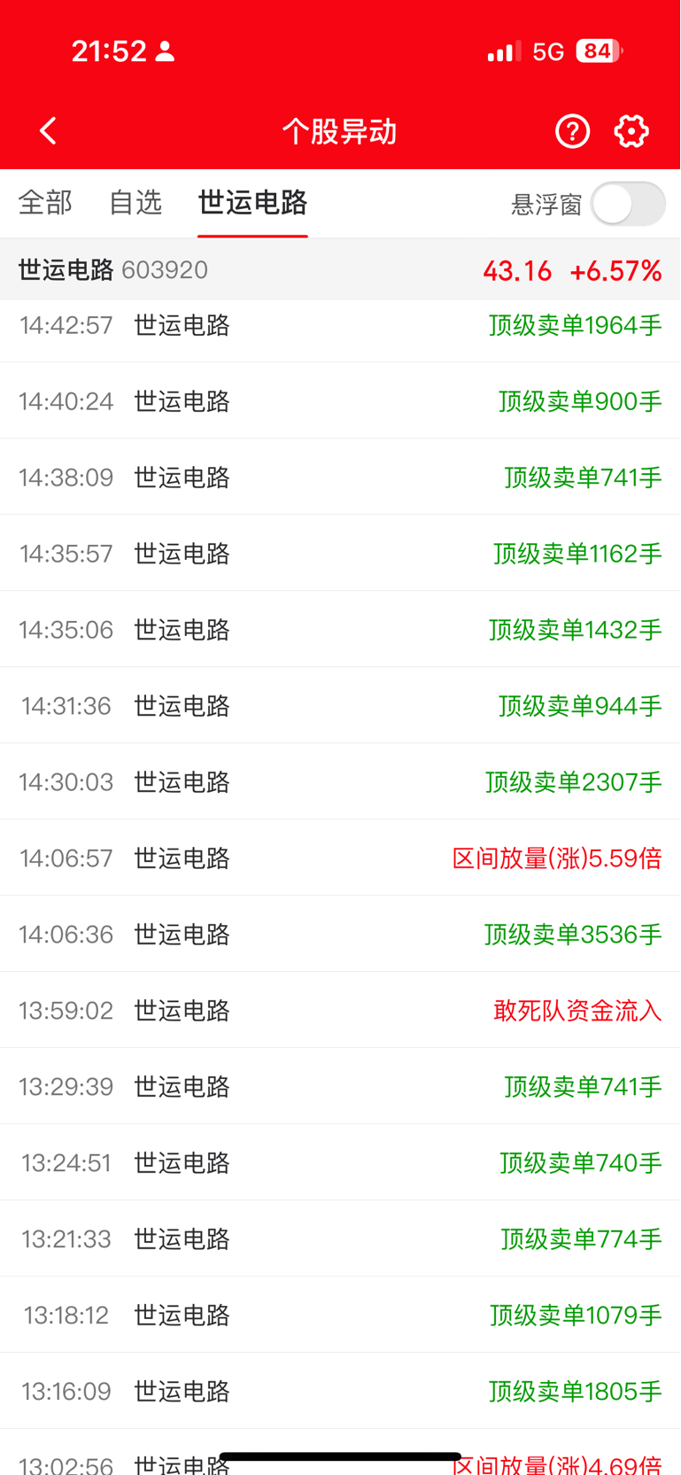 $世运电路(SH603920)$ 昵吗:今天出了多少货呀?
