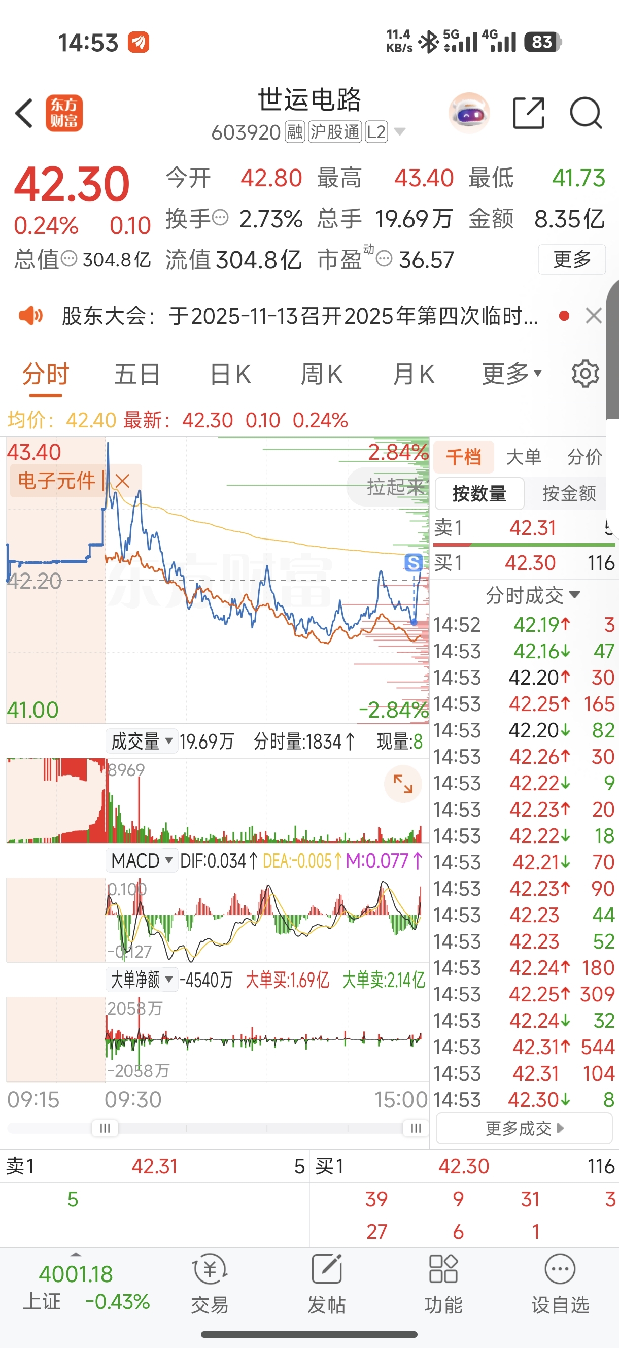 $世运电路(SH603920)$ 怎么我一割他就拉啊