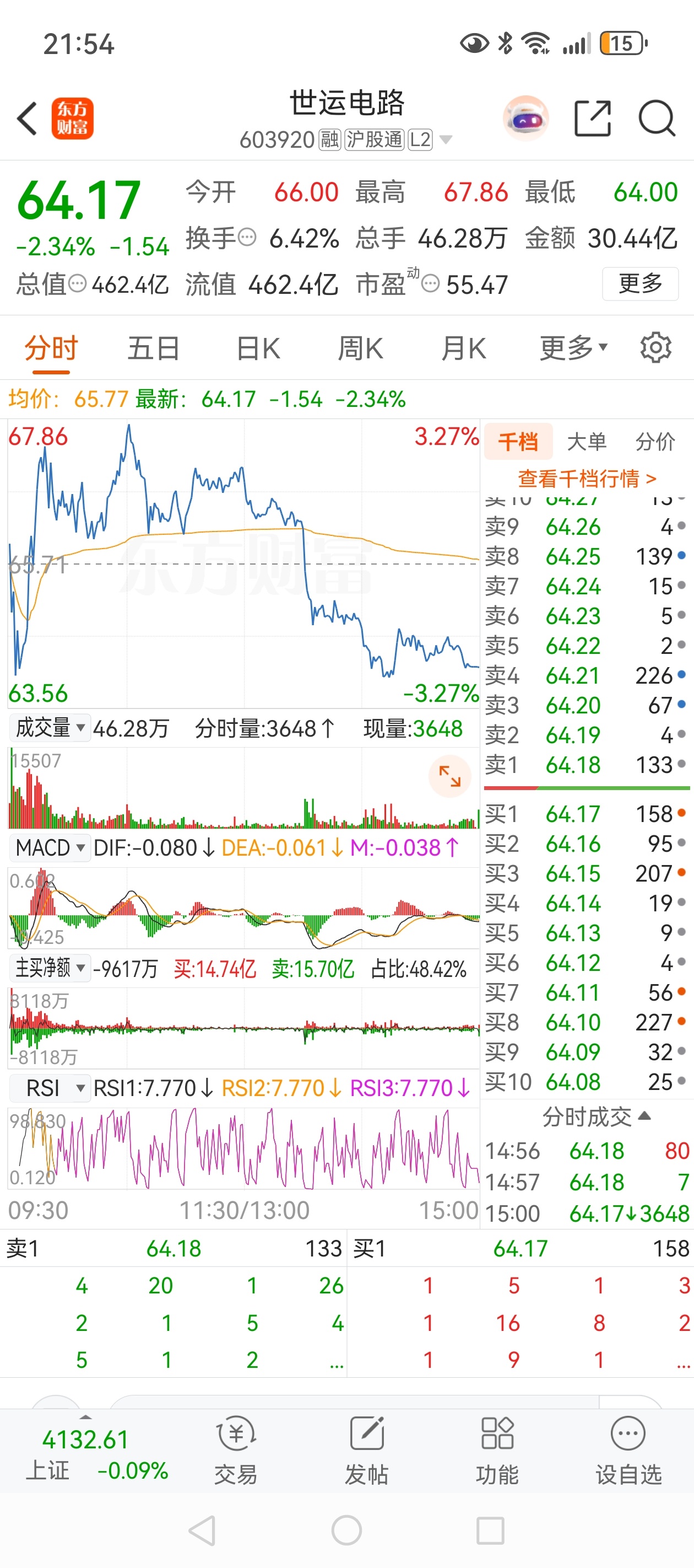 $世运电路(SH603920)$ 终于调回来了。搞了几个钟。今天的空头很大。有点难搞。