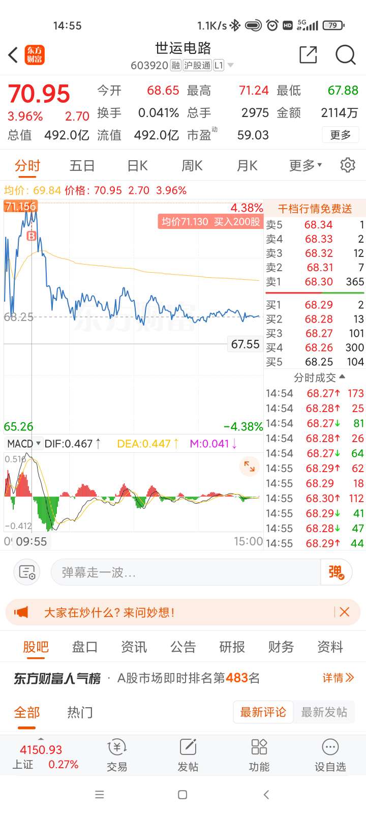 $世运电路(SH603920)$ 早上干那么猛以为你要涨停呢?我一追进去就崩,好家伙 我这两手就是压死你的最后一根稻草呗?
