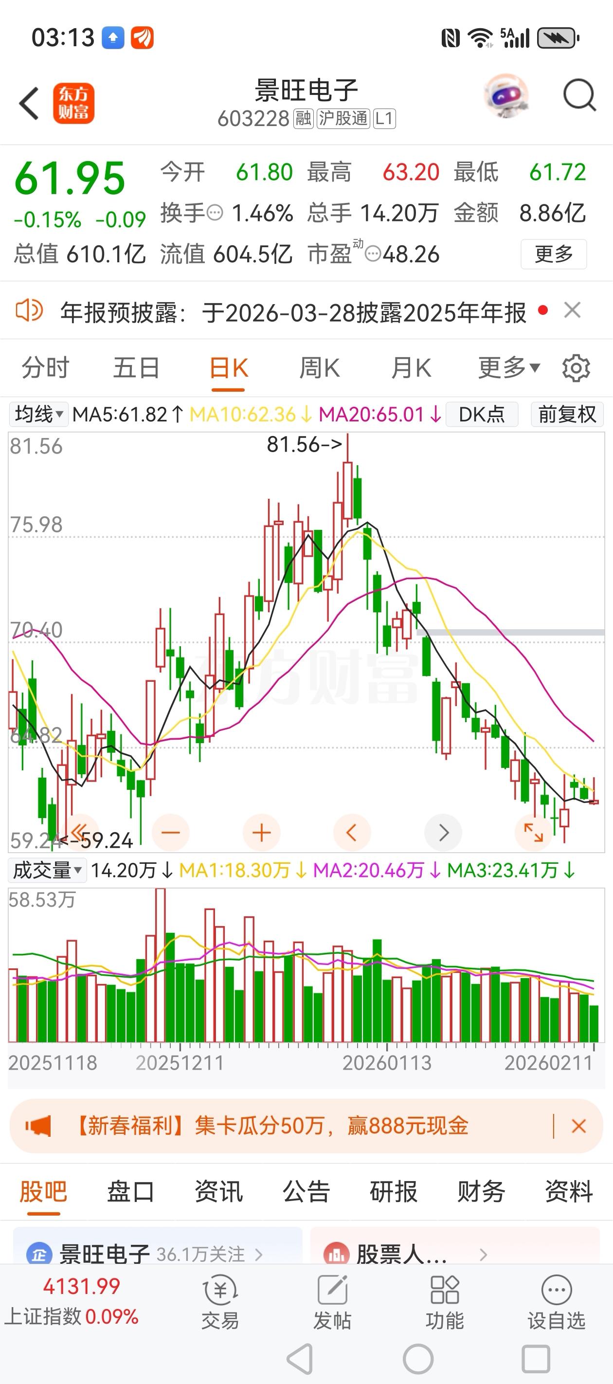 $世运电路(SH603920)$ 参考龙头景旺胜宏生益龙头走势,起码要跌到53元才会企稳!